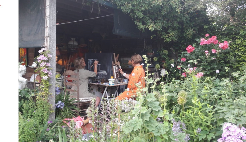 Met mijn schildervriendin Willeke doe ik leuke dingen. We schilderen vaak samen (gaan ook beiden naar schilderles) en soms geven we samen workshops (als de groep groot is), bijvoorbeeld bij vrouwenverenigingen, conferenties, vrijgezellenfeestjes of een zussen/vriendinnendag.